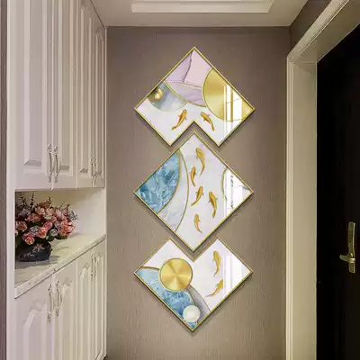 Nordic light luxury porch decorative painting new nine fish picture hanging painting vertical polygon triptych painting into the house corridor mural