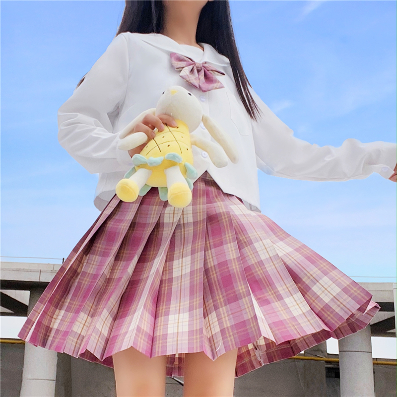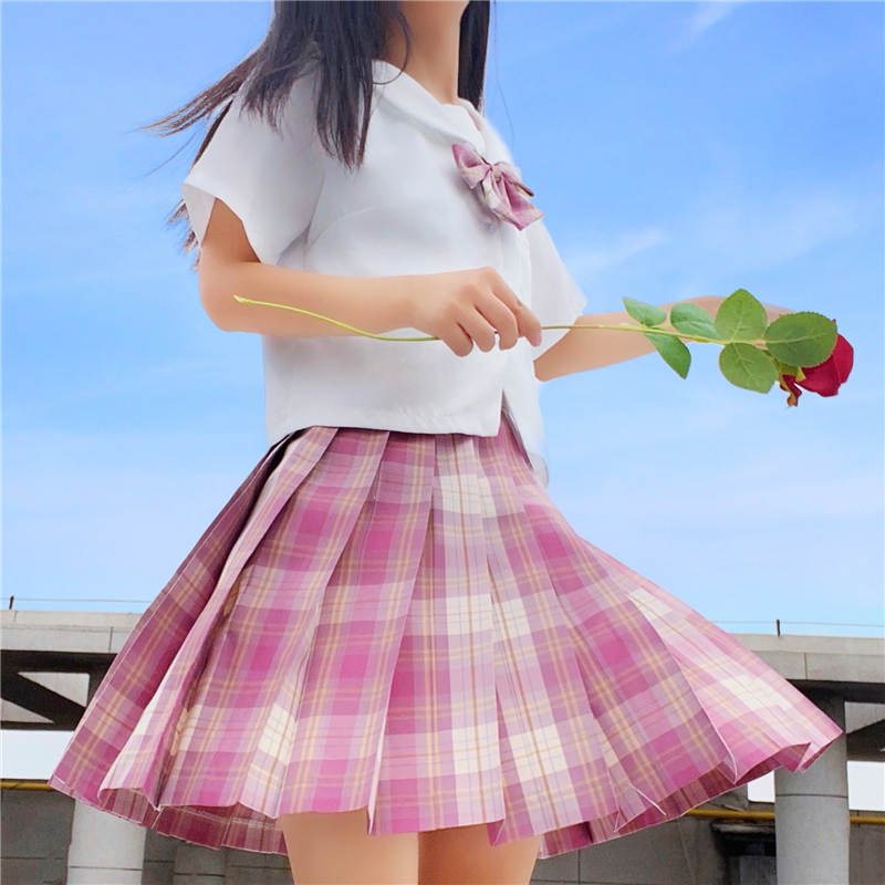 Raspberry black tea lattice skirt free bow tie Kanto lapel long sleeve shirt (single piece) Kanto lapel short sleeve shirt(single piece) Long sleeve three-piece set Short sleeve three-piece set
