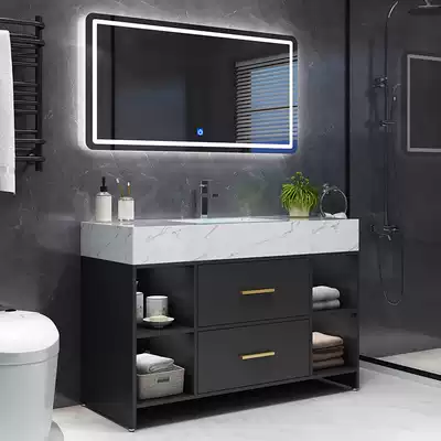 Marble floor-to-ceiling bathroom cabinet combination set intelligent rock board wash hand wash basin mirror cabinet