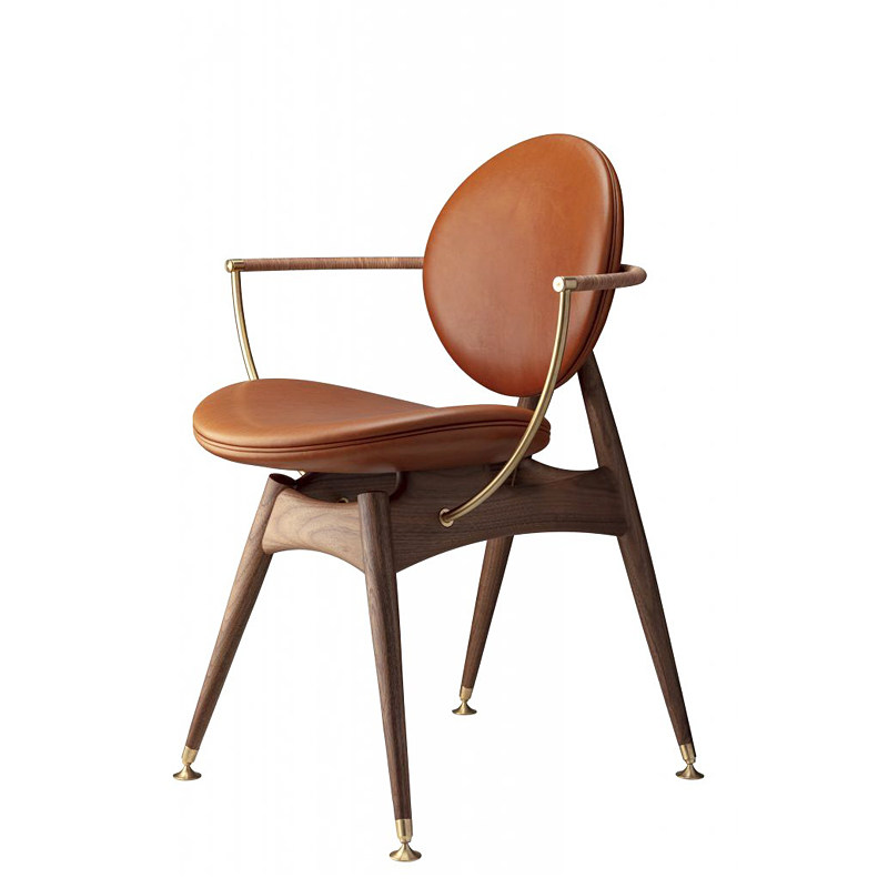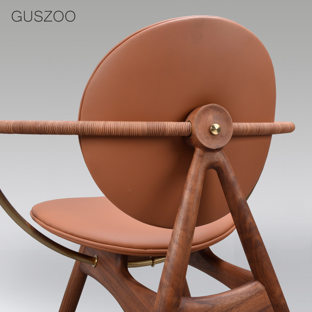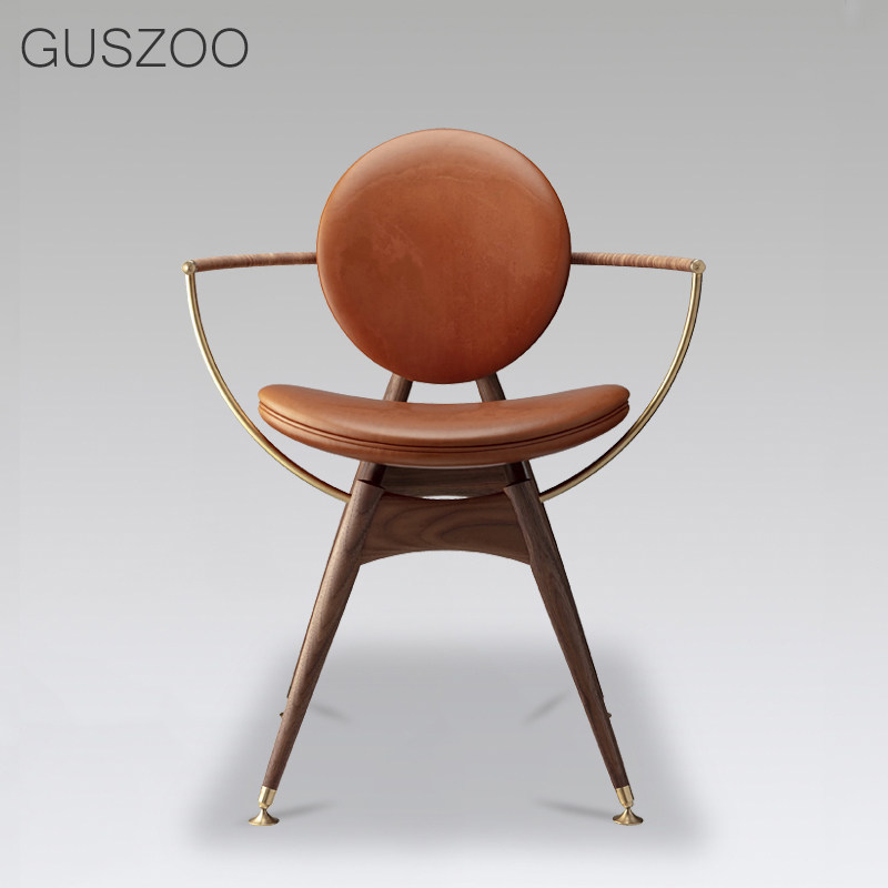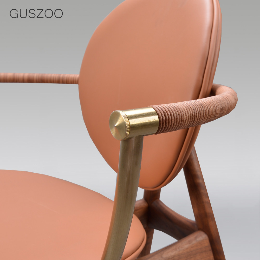 Nordic log dining chair Italian leather chair designer light luxury black black walnut top layer cowhide armchair