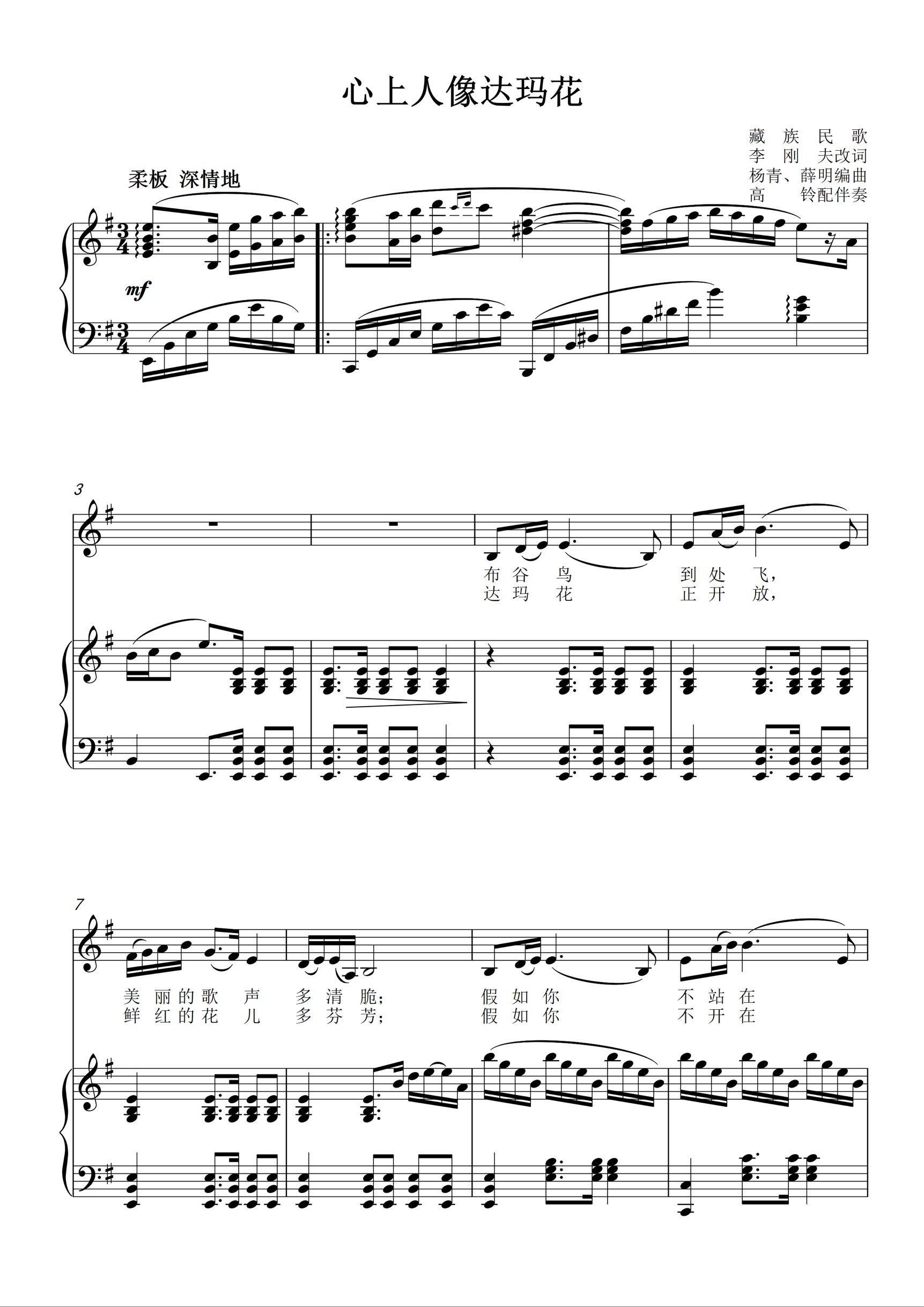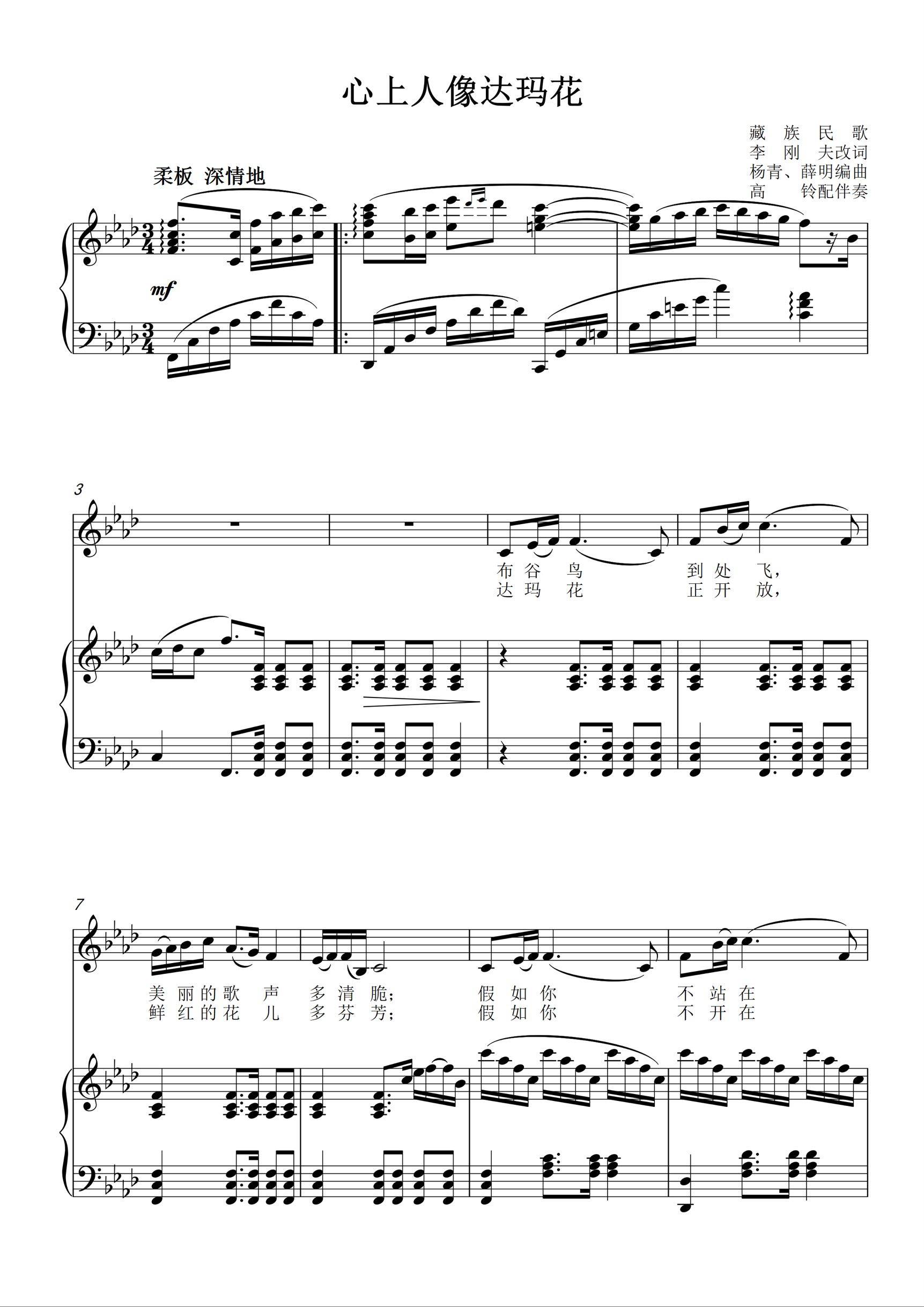 Heart people like Dharma Flower original descent B A drop A G tone vocal piano accompanied by five lines of spectral positive score