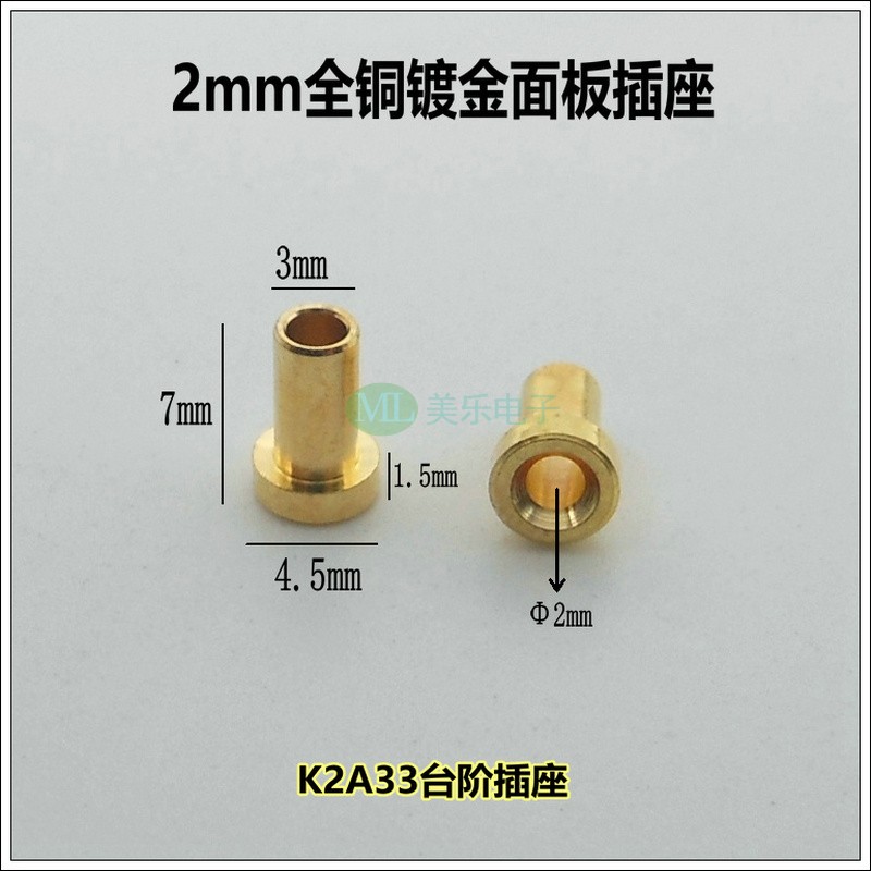 Pure copper-plated real gold K2A33 banana socket No. 2 step socket test bench 2mm test hole short-circuit test seat