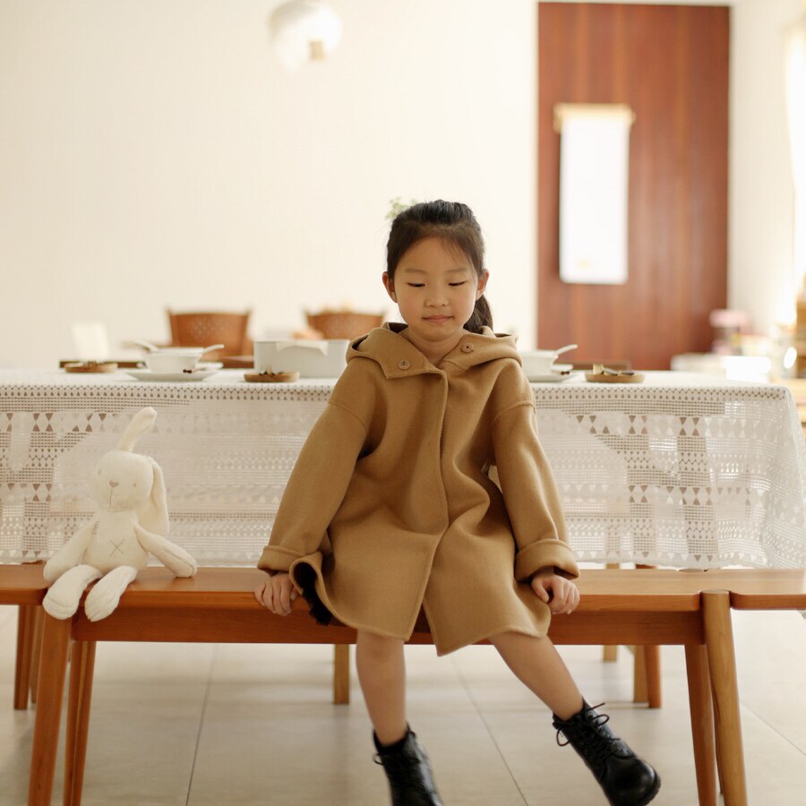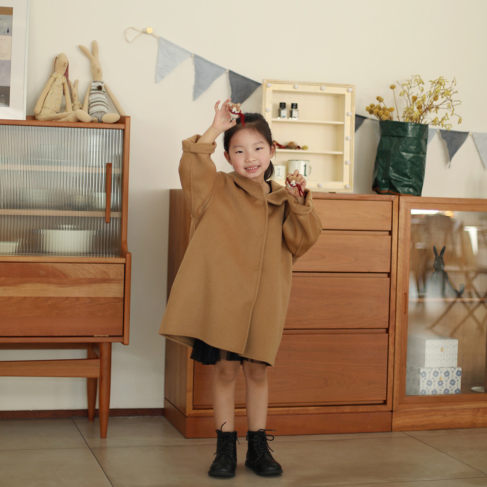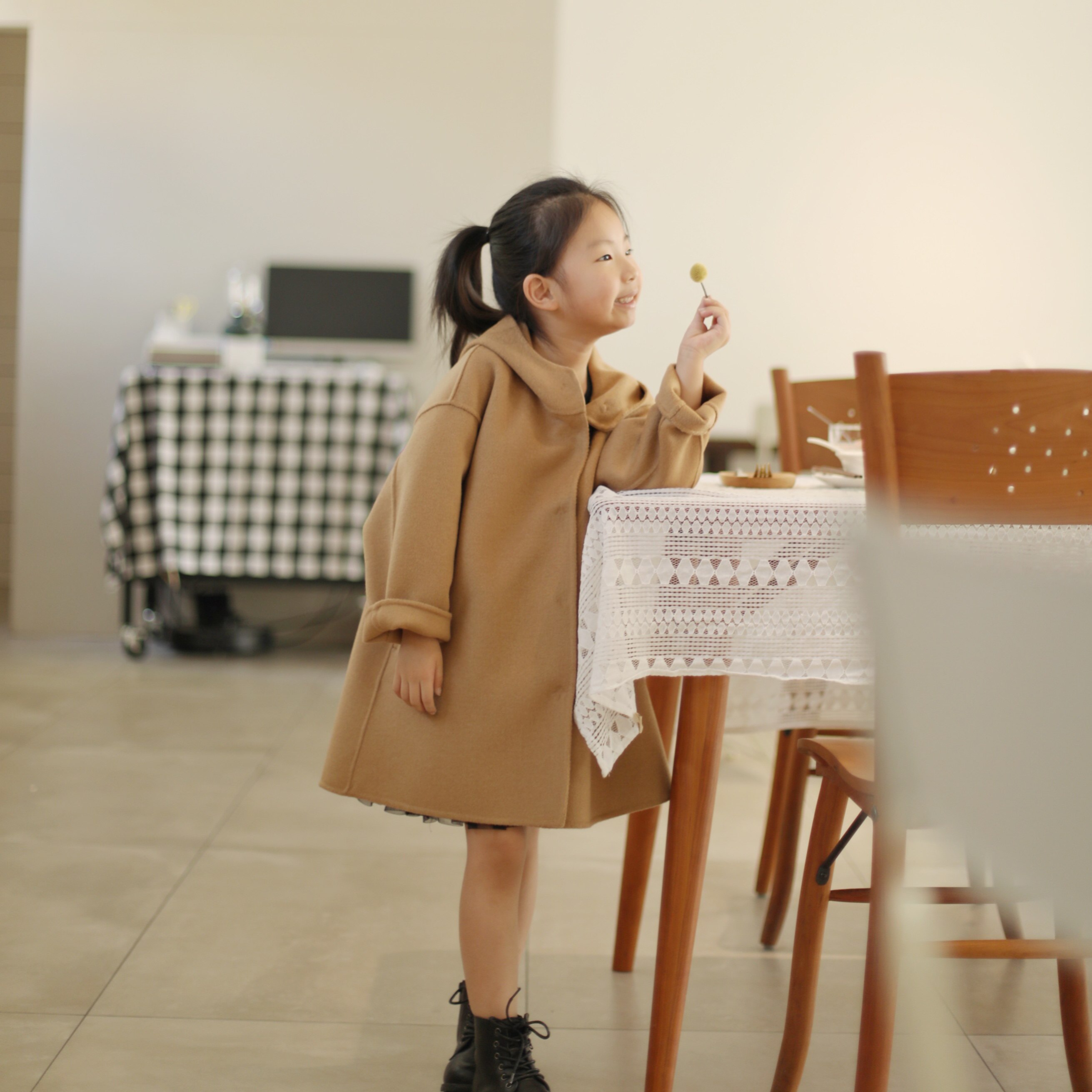 Male and female child cloak Han version of the Korean version with double face cashmere big coat 2021 autumn winter dress thickened with cap baby fur coat
