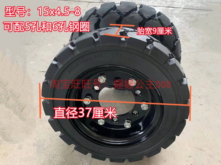 400-6 solid tire (excluding steel ring) 400-6 solid tire (with 4-hole steel ring) 15x4 5-8 solid tire (excluding steel ring) 15x4 5-8 with 5-hole steel ring (