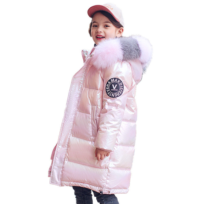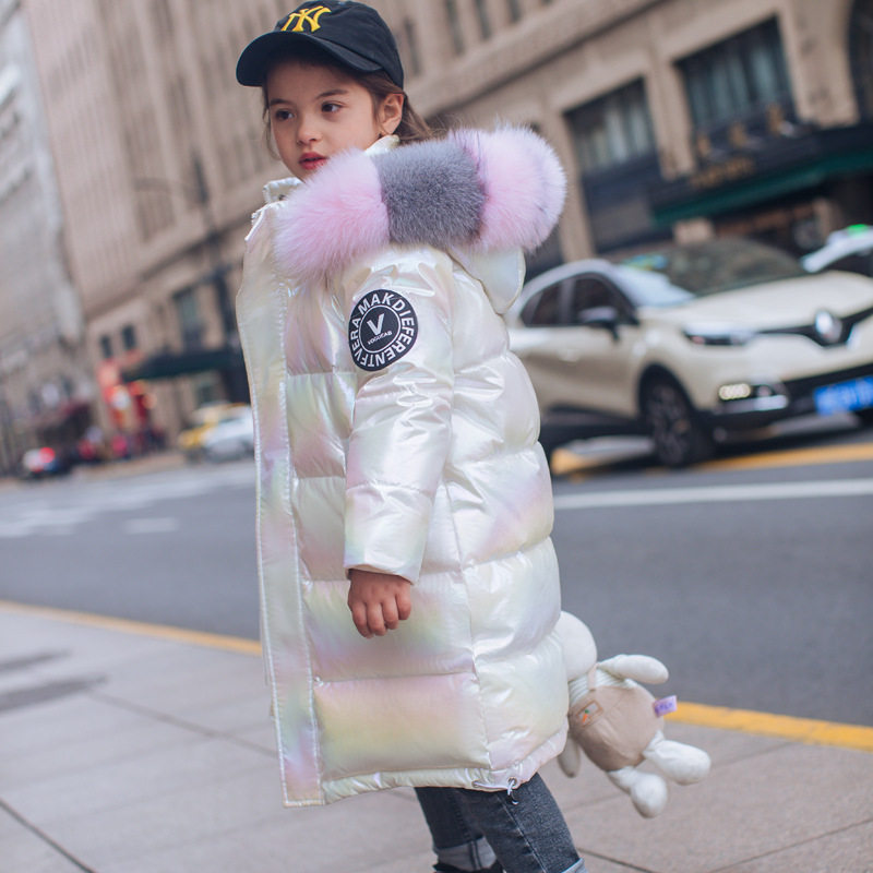 Britain's next kiss girl's down clothes 2021 new children's long version thickened foreign pie girl big fur collar