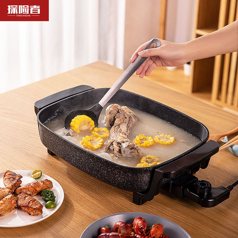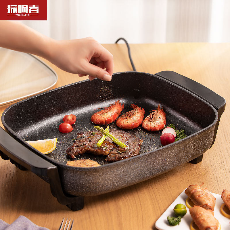 Grilled meat pot grilled fish stove electric grill household barbecue machine grilled shabu-shabu grilled hot pot all-in-one pot indoor grilled fish smokeless