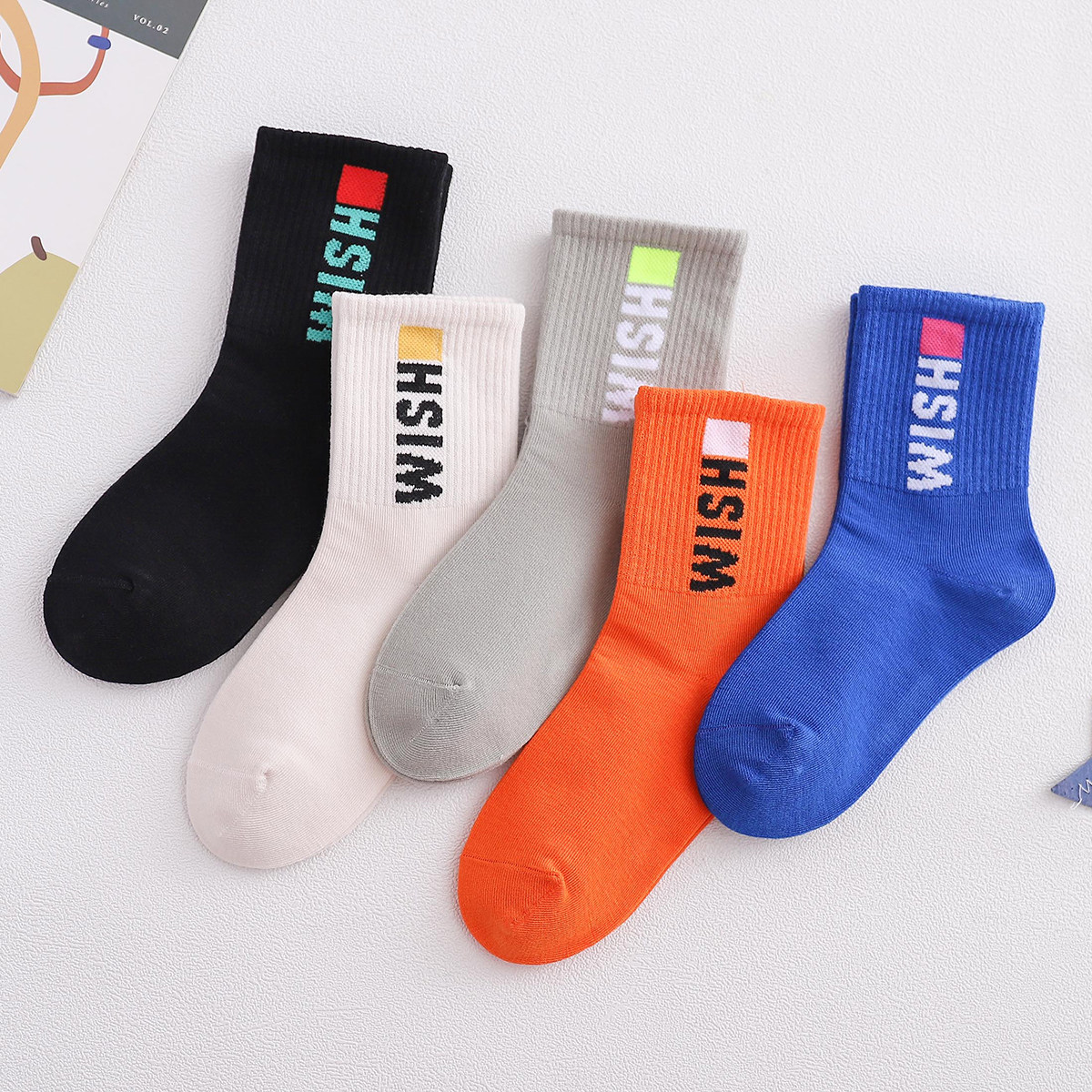 Five pairs -1863 letters WISH Sox 5 double -1844 - autumn winter middle cylinder Sox 5 Double -1866 - Digital medium cylinder Sox 5 Double -1850 Personality Neutrals Socks 5 Double -1