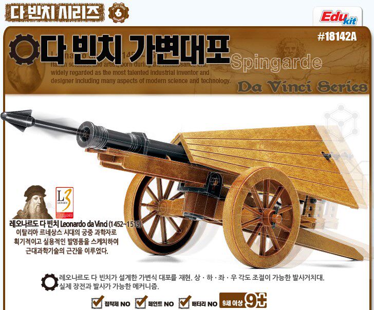 Da Vinci Invention Series Nu Cannon Assembled Model Glue-free and color-free movable Admiral 18142