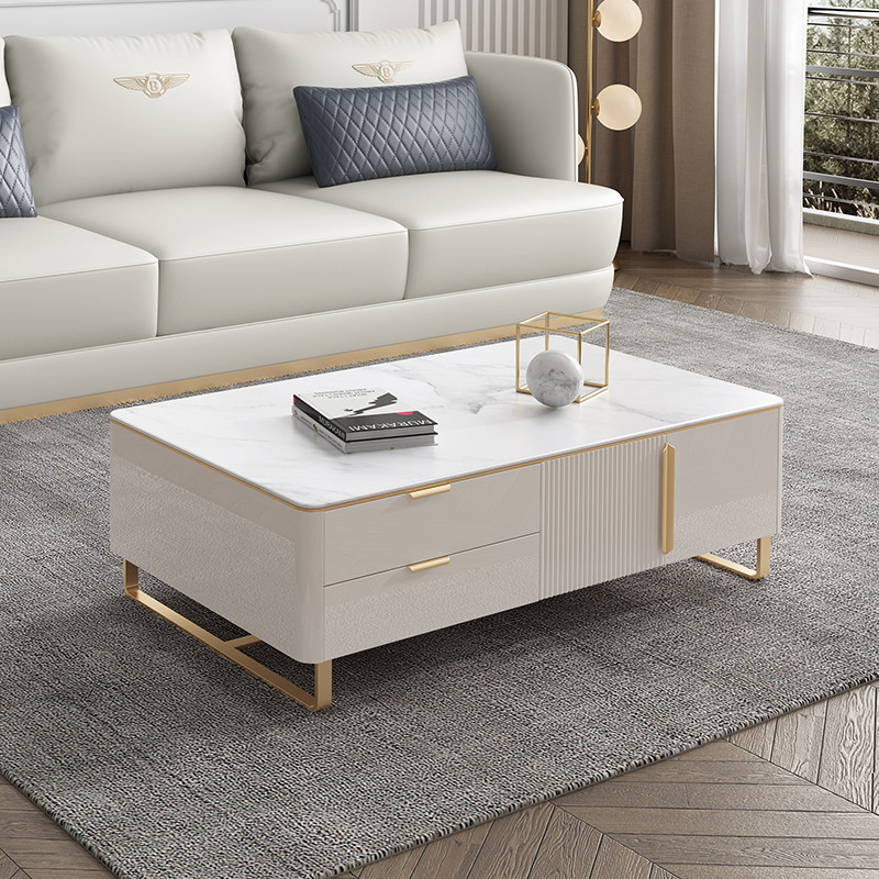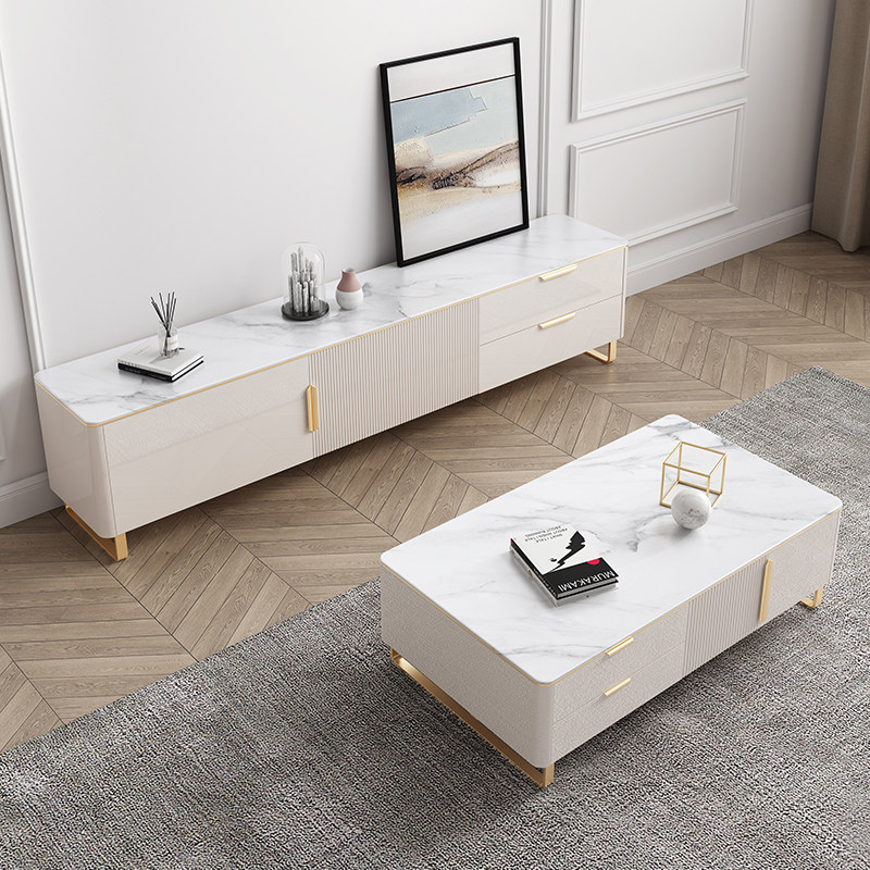 TV cabinet Coffee table combination Light luxury wind living room Modern luxury bedroom high white paint rock board TV cabinet