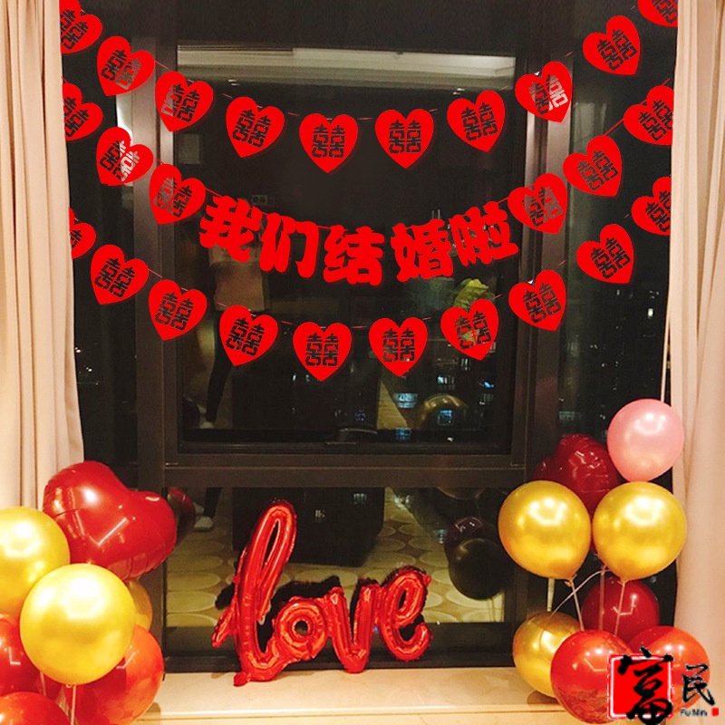 Wedding Wedding supplies Non-woven hollow Hi word pull flower love pendant Wedding new house decoration Wedding room decoration