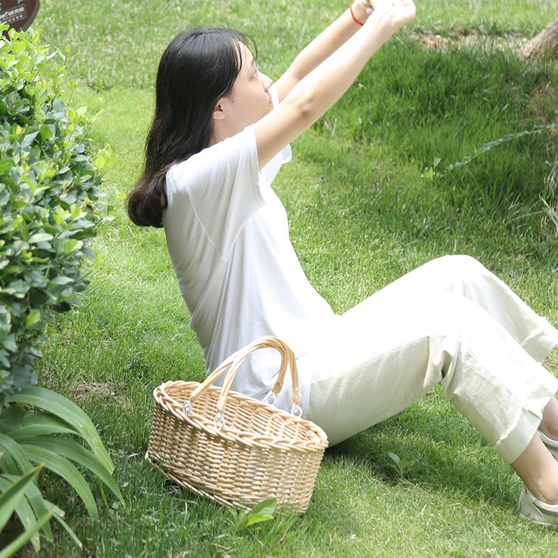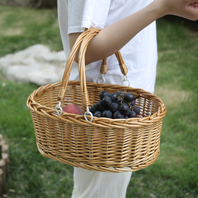 Rattan hand basket picking basket travel vacation picnic basket hand basket bamboo basket fruit basket gift basket