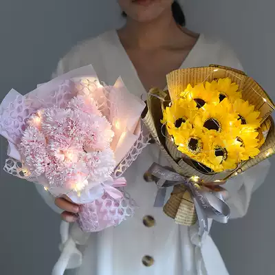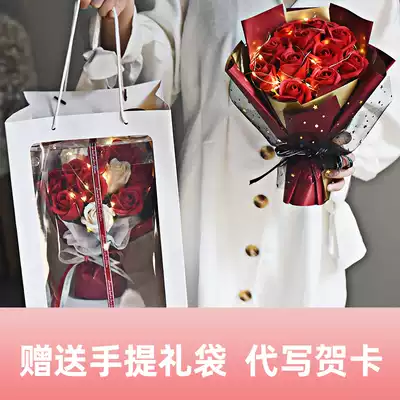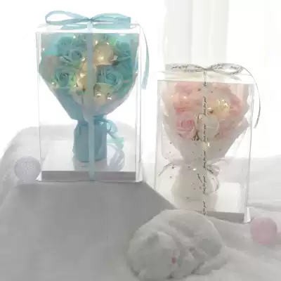 Four-sided transparent gift boxes need to be assembled by yourself Oh 3 pink roses 3 white roses 5 pink carnations 11 red carnations soap gift boxes 11 pink roses soap flowers gift boxes 11 red roses