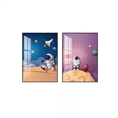 Bedside wall decoration painting children's room bedroom vertical version two cartoon astronauts space hanging painting modern simplicity