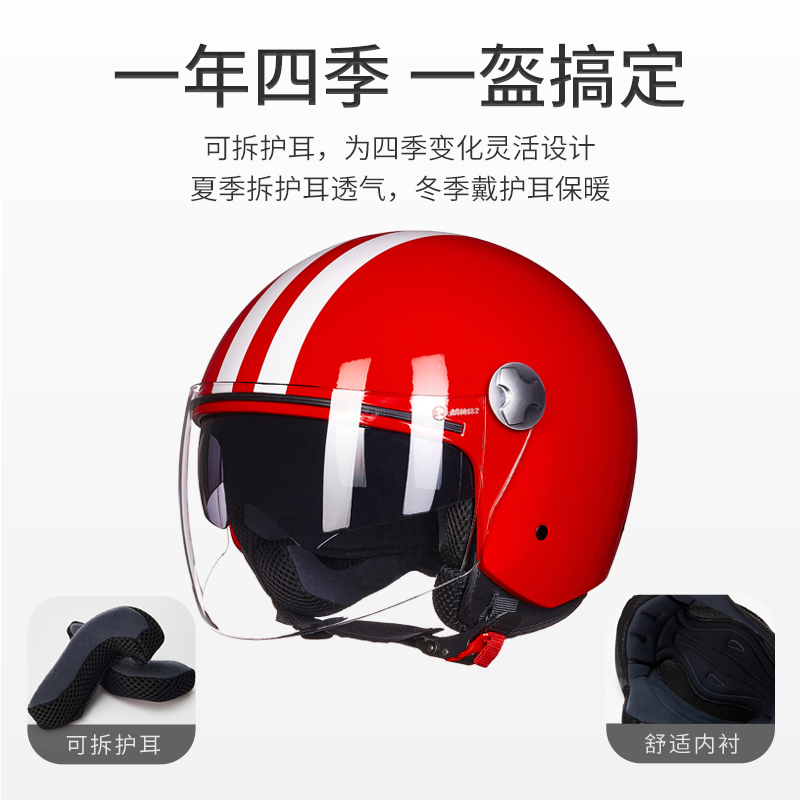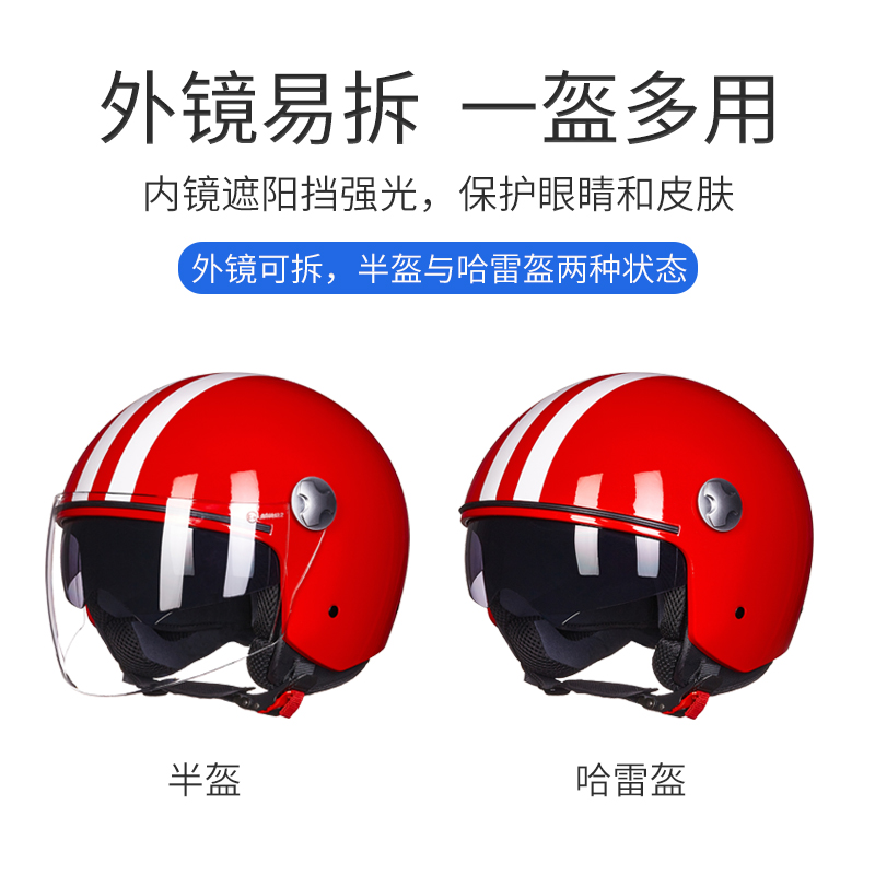 HONZ electric car helmet double lens motorcycle half helmet four seasons helmet summer pedal head gray men and women