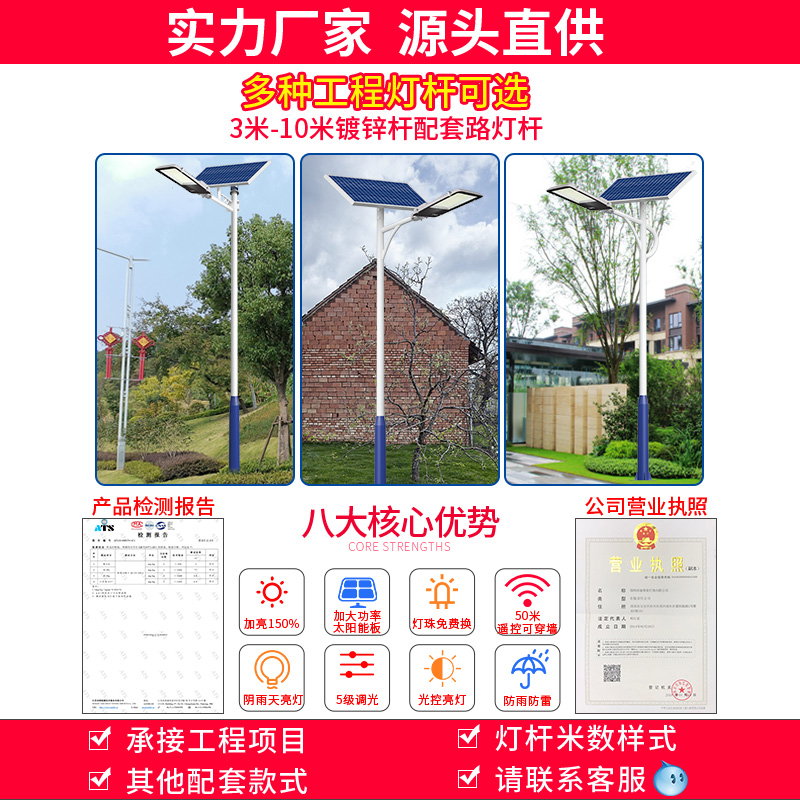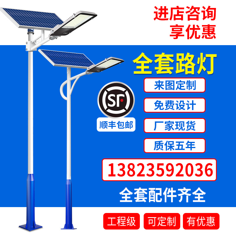 Solar light street lamp outdoor light high-power full set of 568 meters new rural household 100W super bright led street light pole