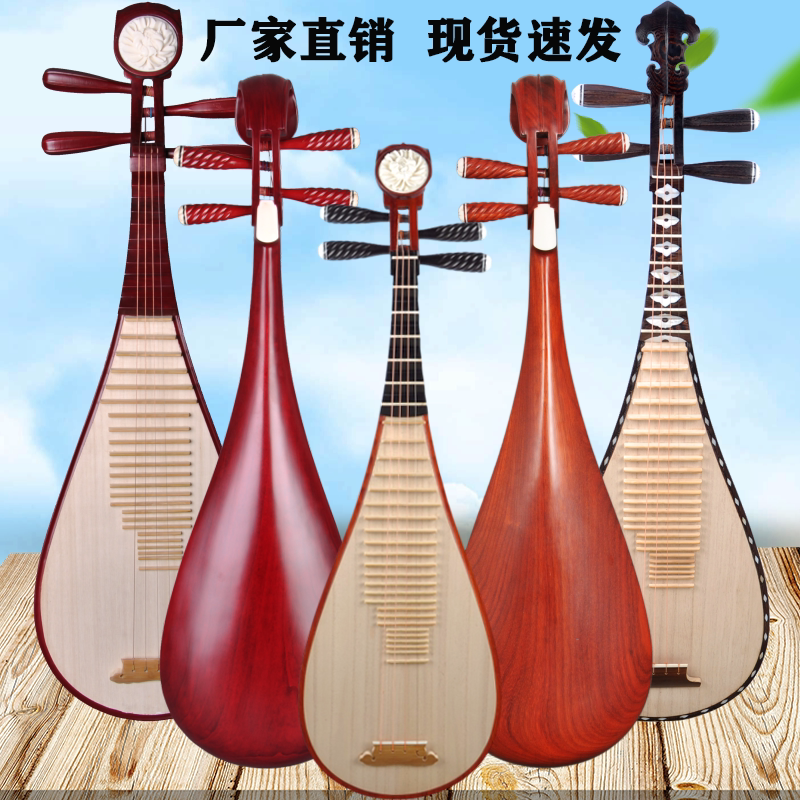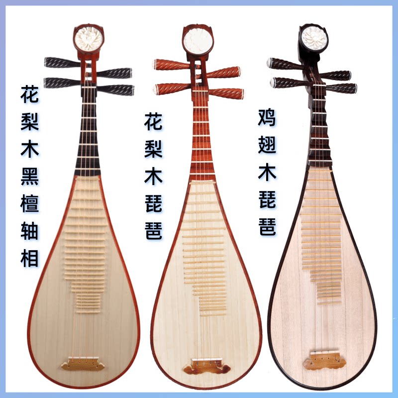 Pipa Musical Instrument Hardwood Red Flowers Pear Wood Chicken Wings Wood Bay Sculpture Adult Children Professional for Children Professional Appraisal Exam Playing pipa