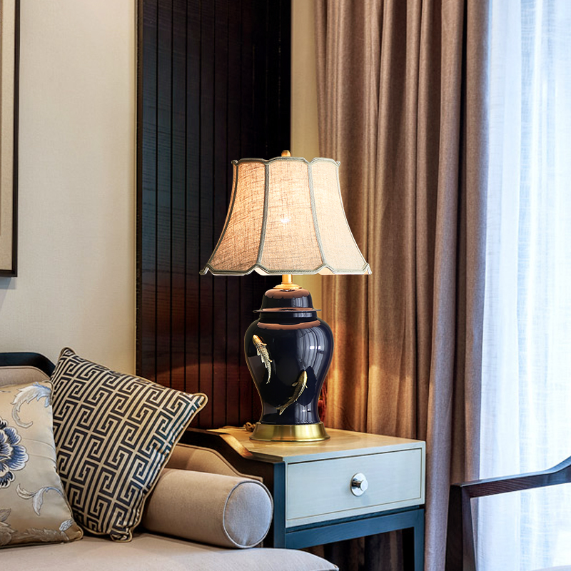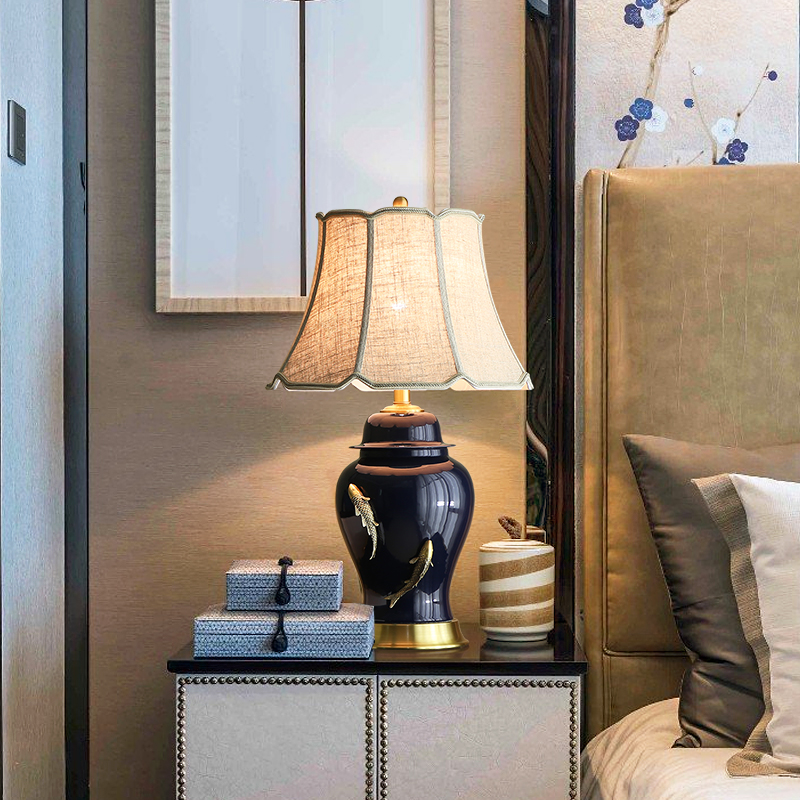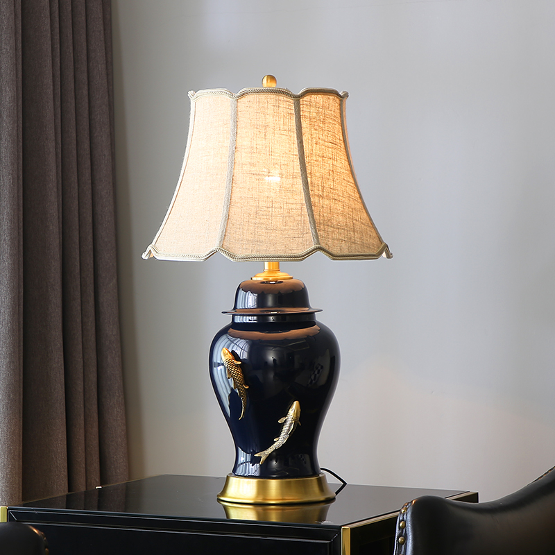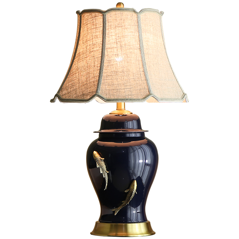 New Chinese all-copper ceramic bedroom desk lamp Home warm room bedside table decoration wedding room living room bedside lamp