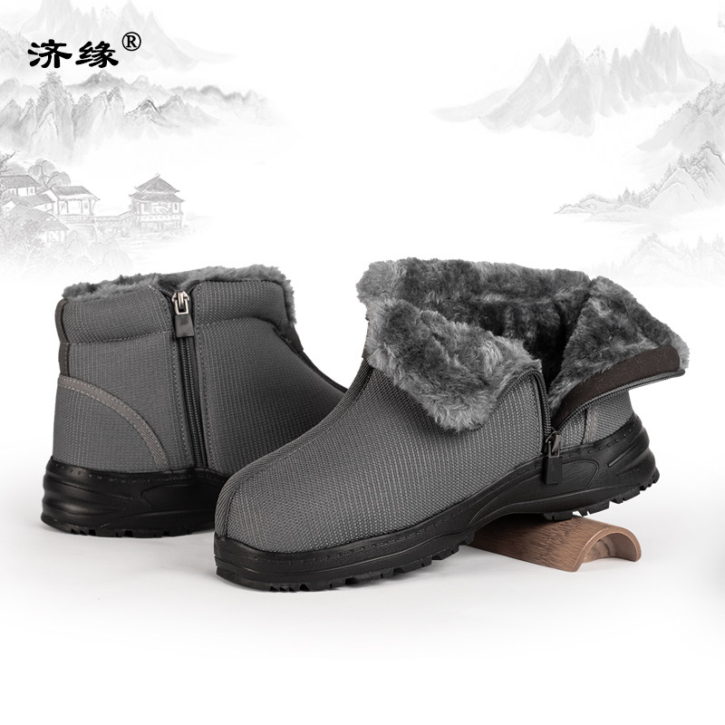 Monk Shoes Cotton Monk Shoes Plus Suede Monk Shoes Winter Style Waterproof Anti-Slip Thickening Warm Plush Cotton Monk Shoes Monk Thickened Cotton Shoes