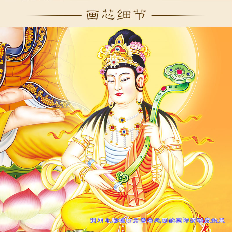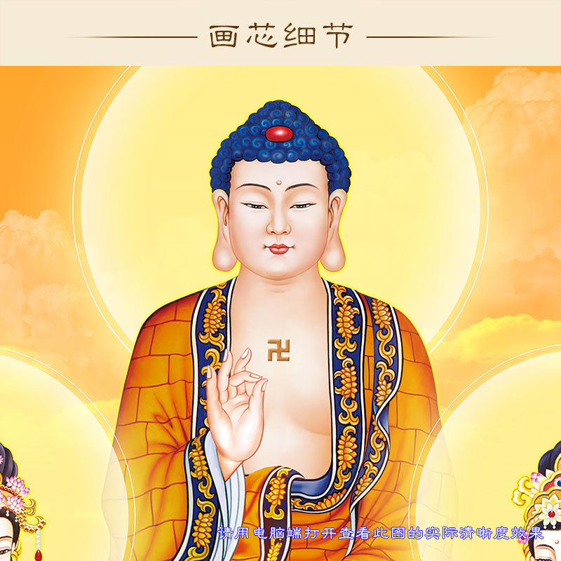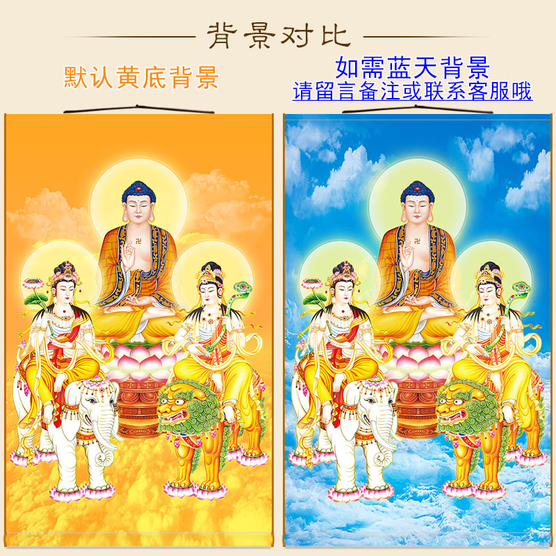 Huayan three holy images Shakyamuni three Buddha paintings Manjushri Samantabhadra Buddha Hall scroll hanging paintings Full-screen full-screen picture