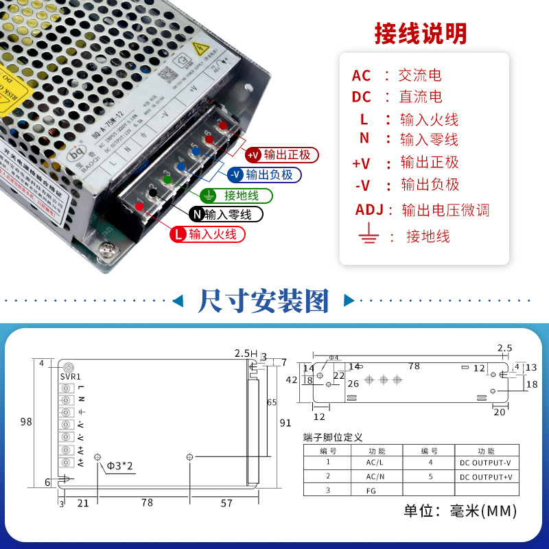 12V6 3A 75W (159 * 98 * 42mm) 24V3A 75W (159 * 98 * 42mm)