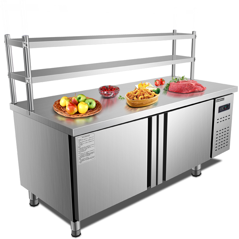 Frozen Refrigerated Operation Table Ice Cabinet Kitchen Stainless Steel Refrigerator Case Board Flat Cold Bench Commercial Milk Tea Shop Freezer