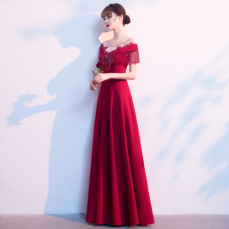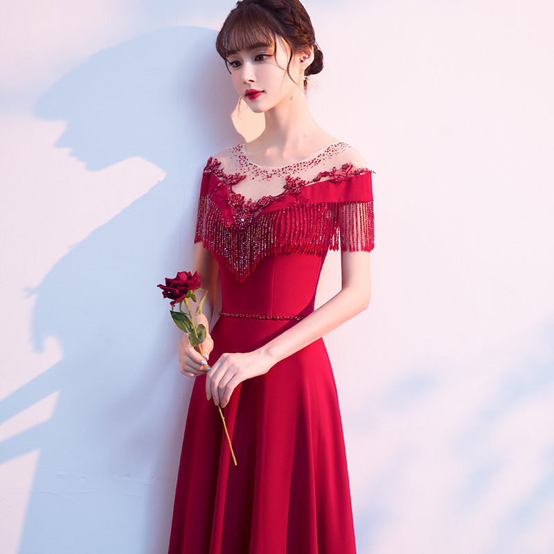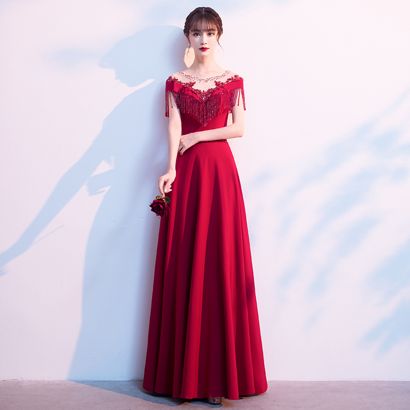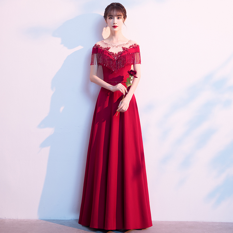 Toast to the bride 2023 new back door pairings Wine Red Noble Temperament Wedding Engagement High-end Evening Gown Lady-Taobao