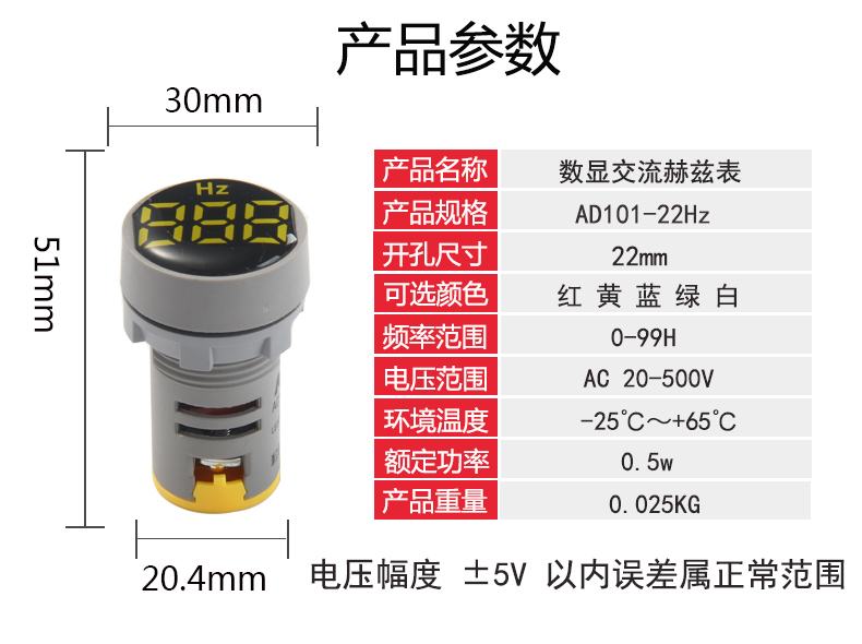 Mini number of indicator lights signal lamp round crystal film Hertz Table 0-99HZ aperture 22MM