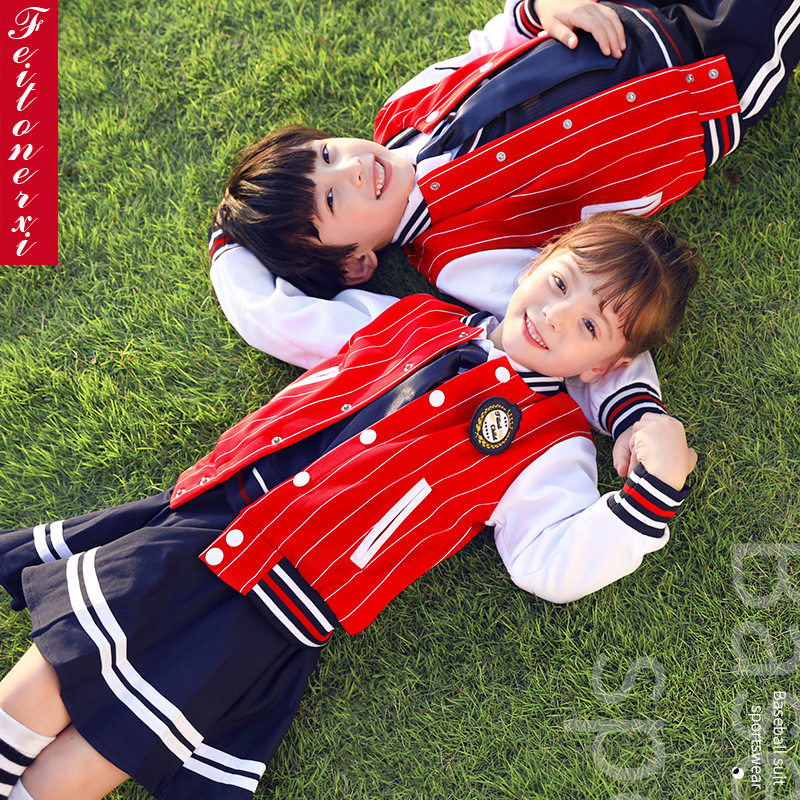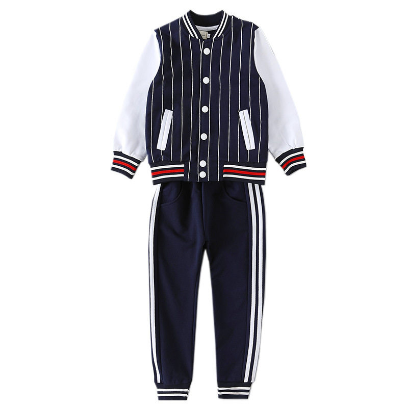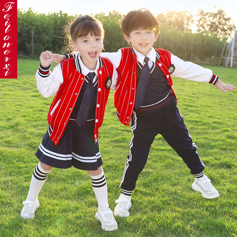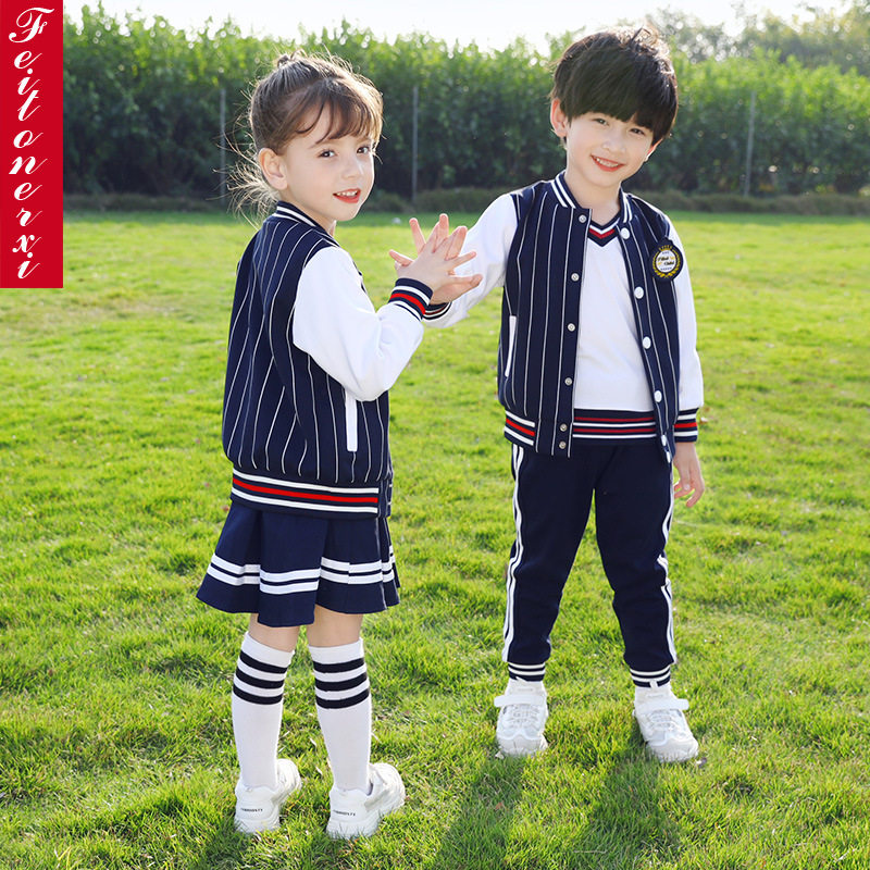 Kindergarten striped baseball uniform three-piece set pure cotton primary school students autumn school uniform autumn and winter clothing children's class clothing garden clothing