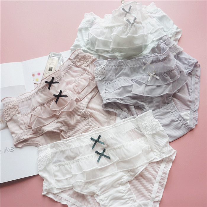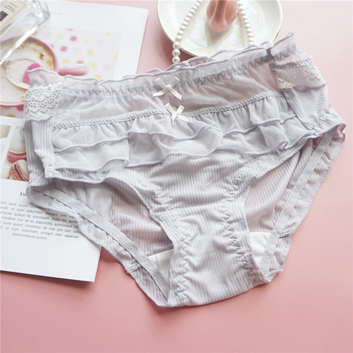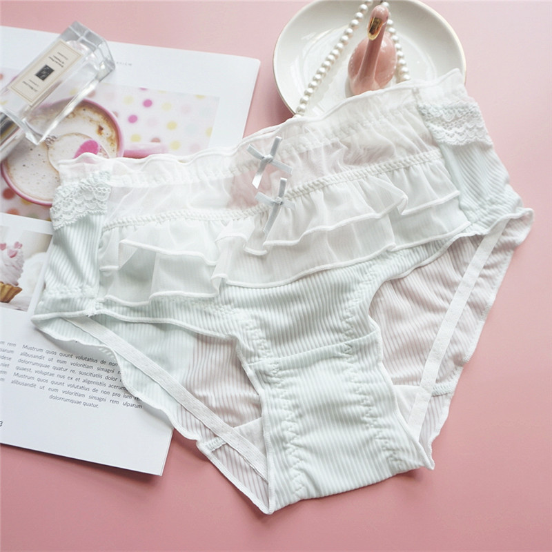 Japanese girl mid-waist bag hip panties Milk silk comfortable bow mesh briefs Sweet and cute