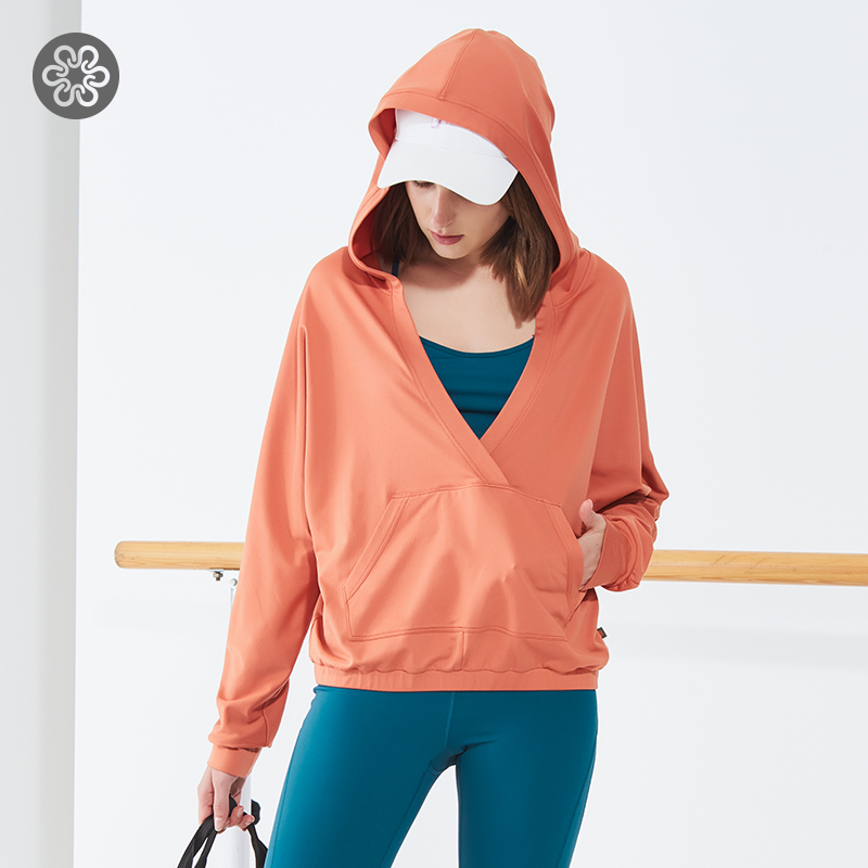 Fan Holy Yoga Hat Loose Long Sleeve Sports Blouse V Collar Tide Fashion Mix Up Street Comfort F10853