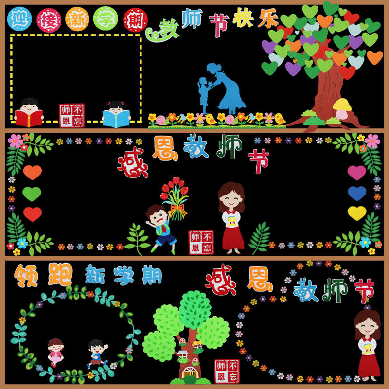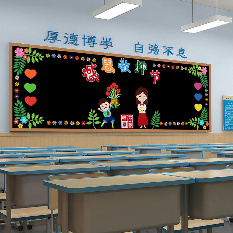 Thanksgiving Teacher's Day theme classroom blackboard newspaper decorative wall stickers primary and secondary school class cultural wall kindergarten layout