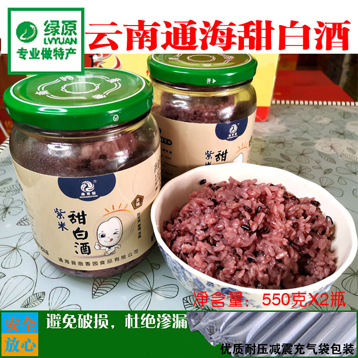 Yunnan Tonghai sweet white wine purple rice wine 550g x 2 bottles of flower distiller's grain confinement rice wine original flavor without adding