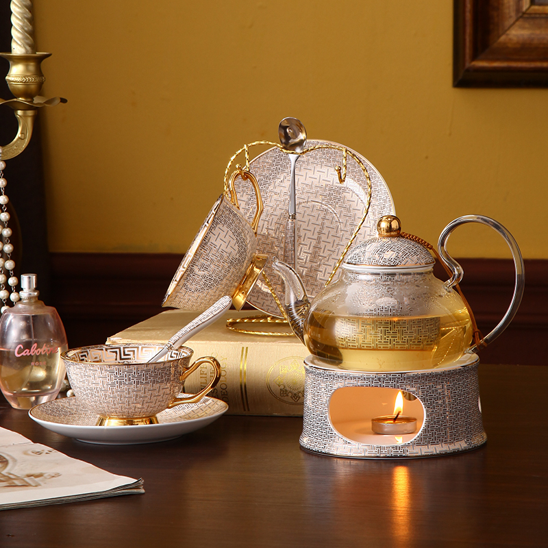 White Grid-Flower Teapot (excluding stove seat) white grid 1 teapot 1 stove holder white grid 1 teapot 1 stove Holder 2 cups with general white grid 1 teapot 1 stove Holder 4 cups with general white grid 1 teapot 1 stove