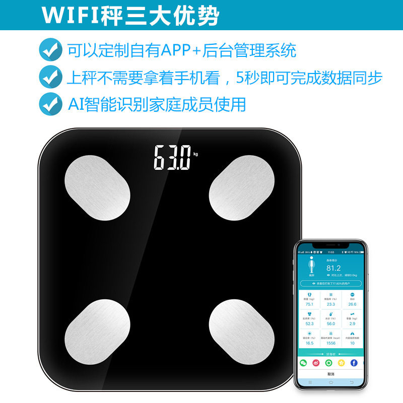 Foreign Trade manufacturers customize tuya graffiti wifi intelligent body fat scale weighing electronic weight weight meter accurate spot