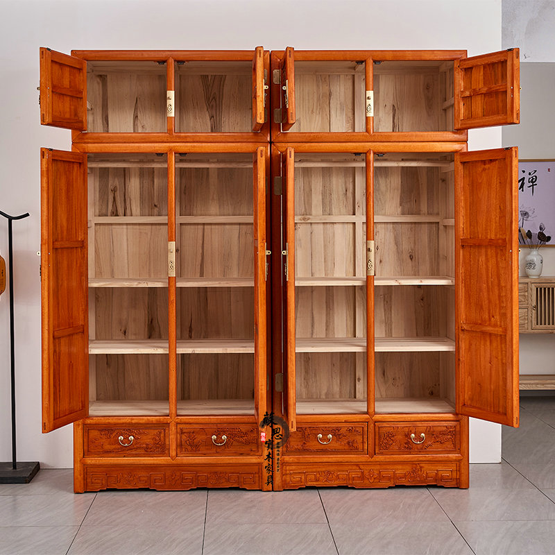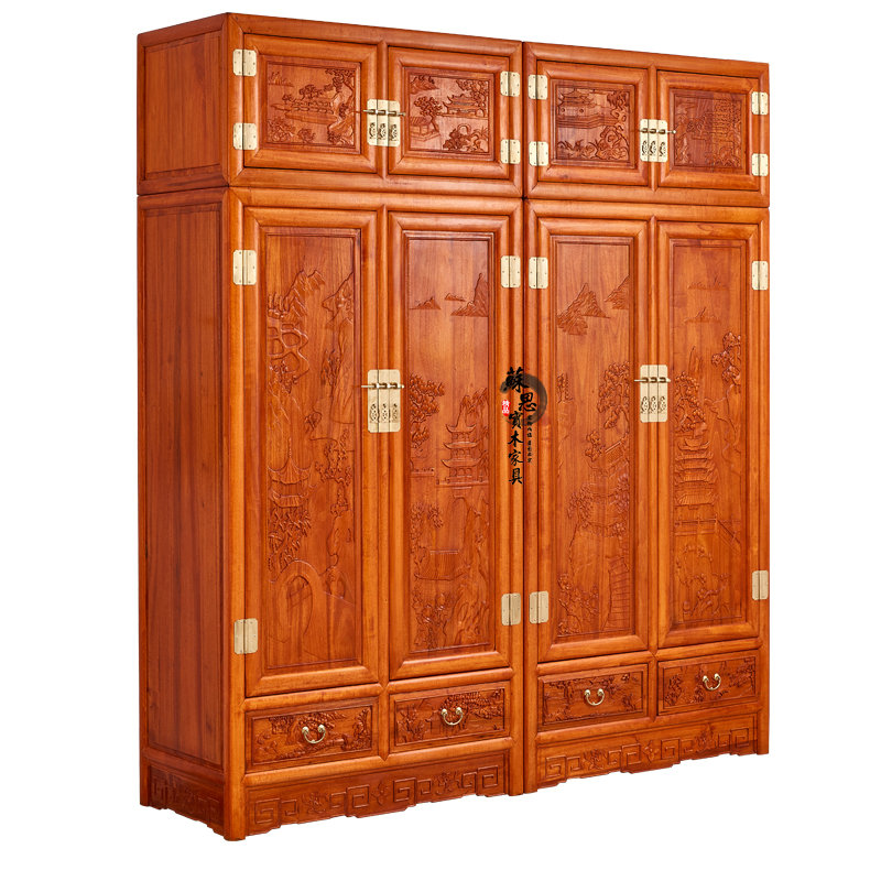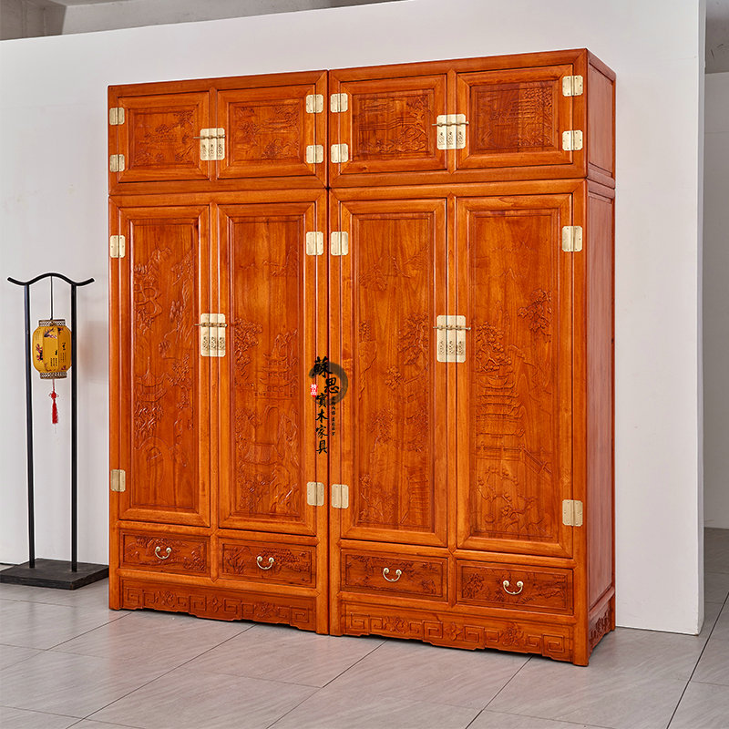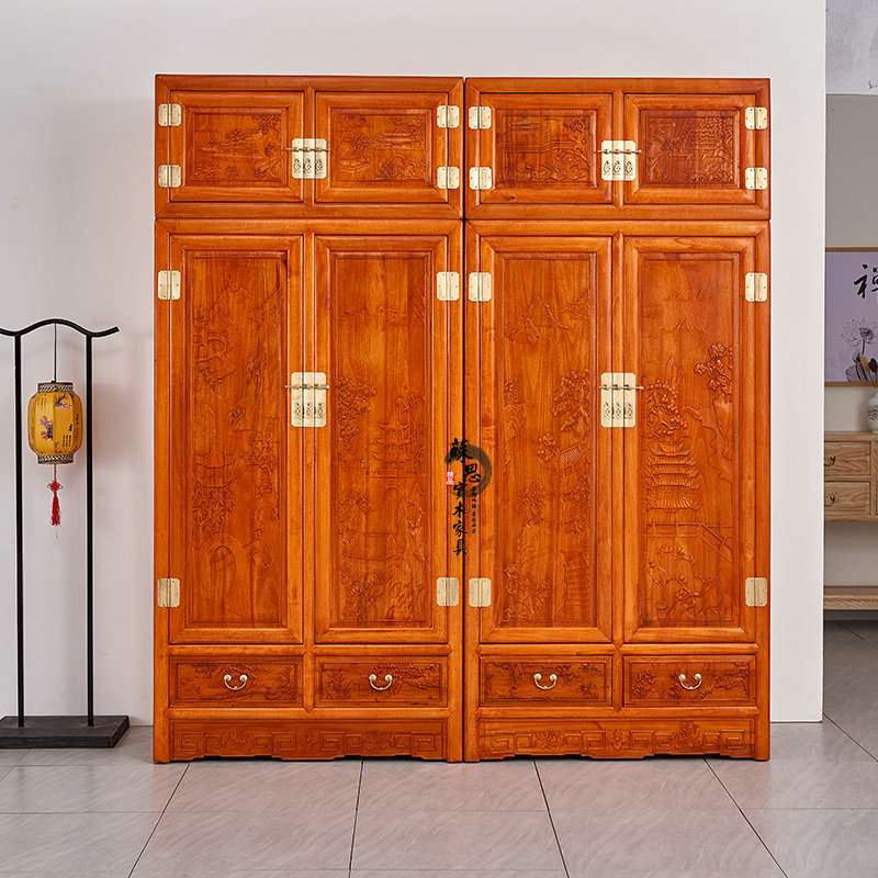 Fragrant Camphor Wood Carved Flower Large Wardrobe Closet Full Camphor Wood New Chinese Total Solid Wood Top Box Cabinet Hanging Wardrobe Log Hanging Wardrobe-Taobao