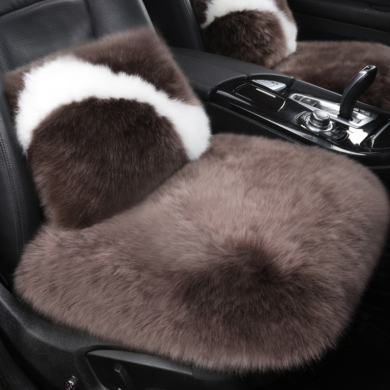 Pure wool car cushion winter fur integrated long plush no backrest three sets single sheet cashmere warm seat cushion-Taobao