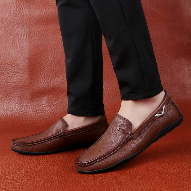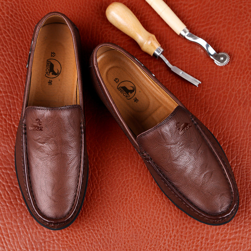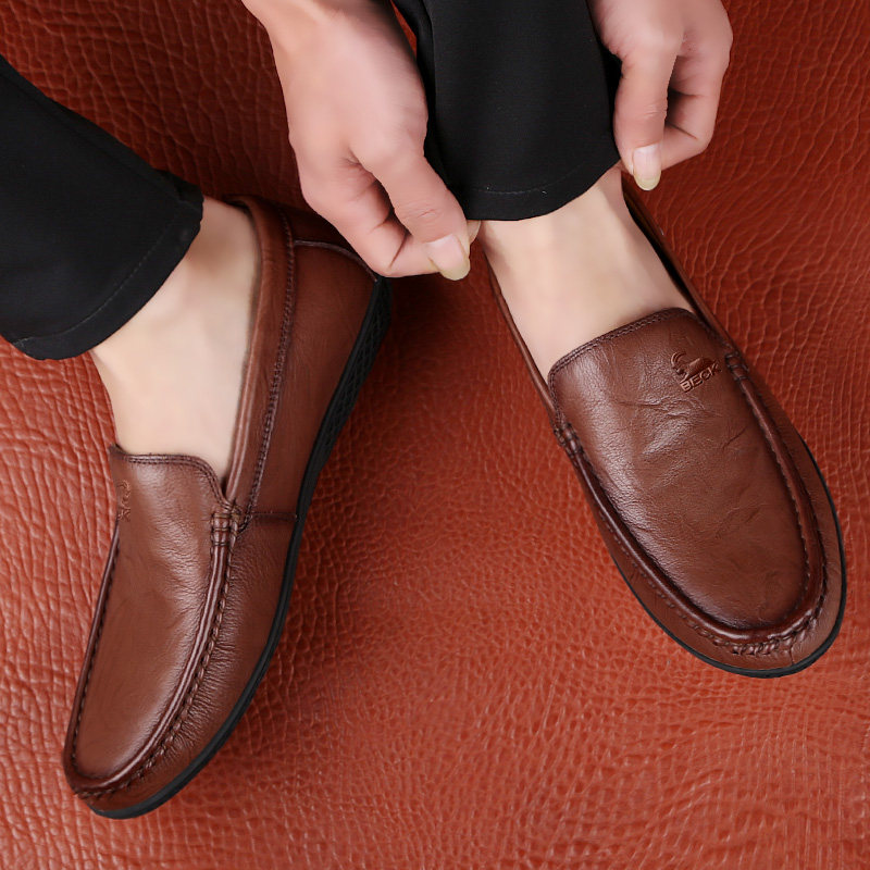 Ram men's casual leather shoes leather soft leather soft bottom men's shoes cowhide daddy shoes autumn men's beanie leather shoes - Taobao