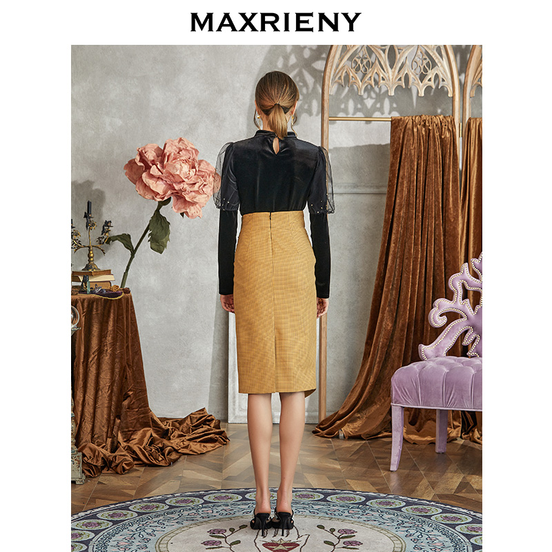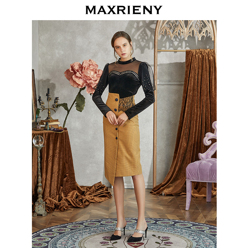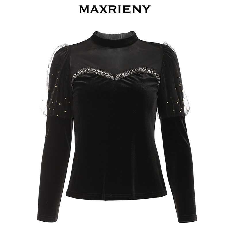 MAXRIENY2020 fall new black blazing long sleeve blouse retro temperament to be slim and slim fit