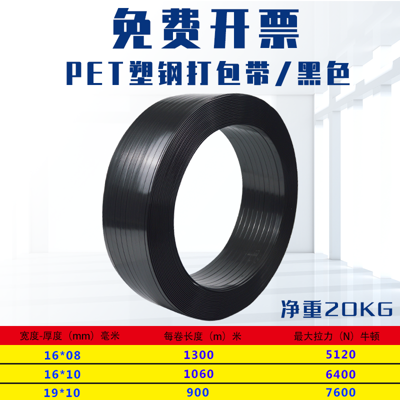 Handmade plastic steel belt black pet plastic steel strapping belt 1608 1910 hot melt packaging belt strap strapping buckle plastic belt