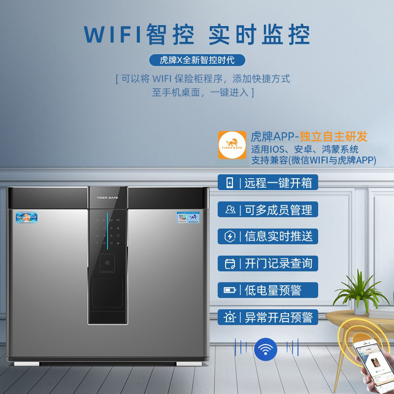 China Tiger Card Safe Home Small Wifi Mobile Phone Remote Mini-Bed Head Cabinet 30CM 35CM High Fingerprint Password Office File Safe Deposit into Wall Student Dormitory Commercial