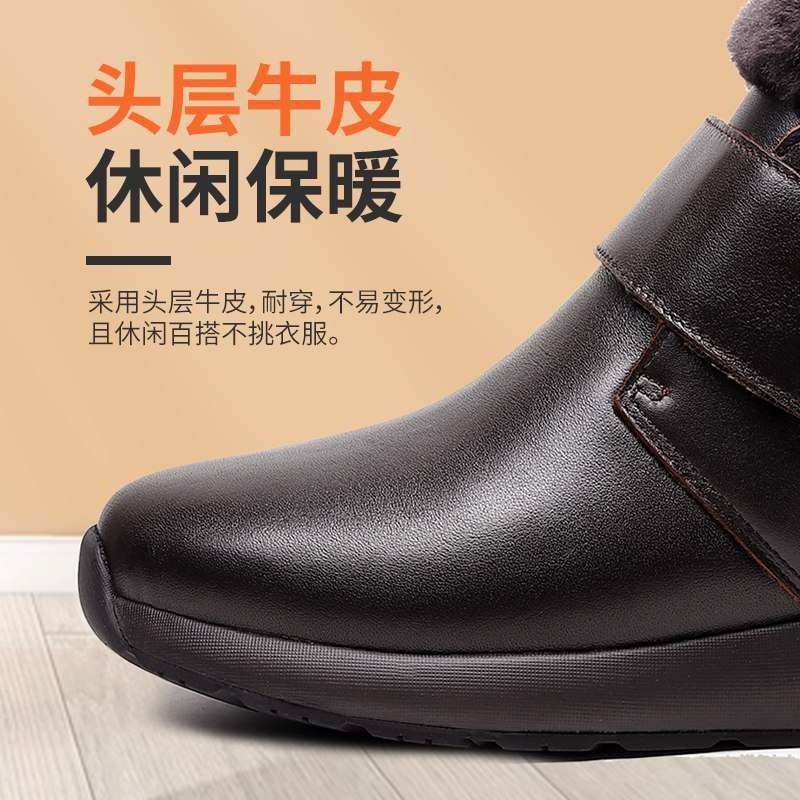 Genuine leather wool integrated male shoes plus suede warm genuine leather daddy cotton shoes for elderly winter thickened wool cotton leather shoes