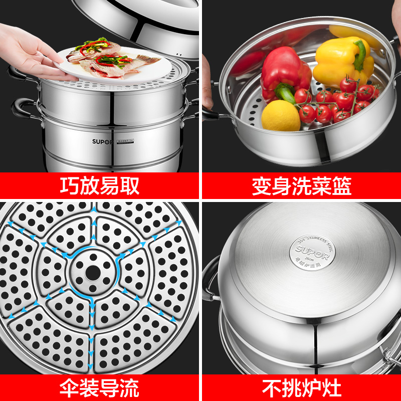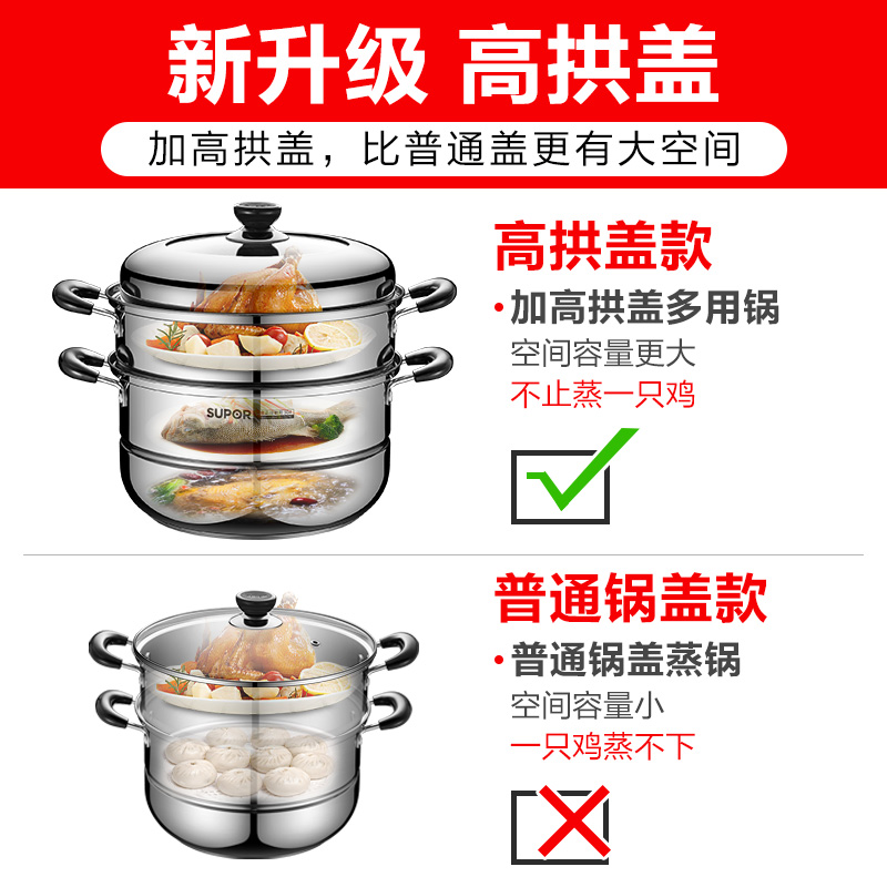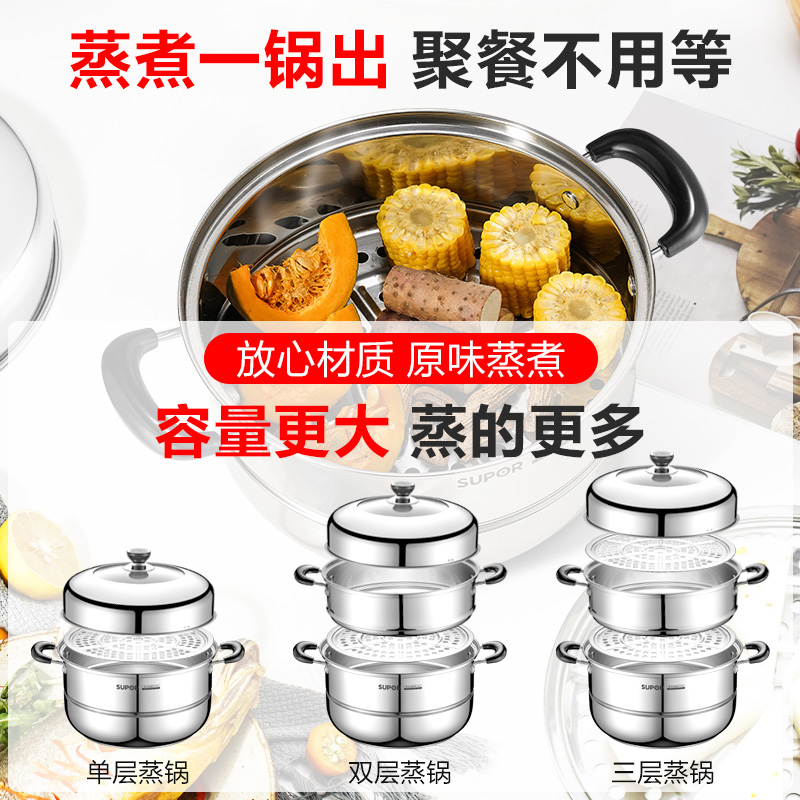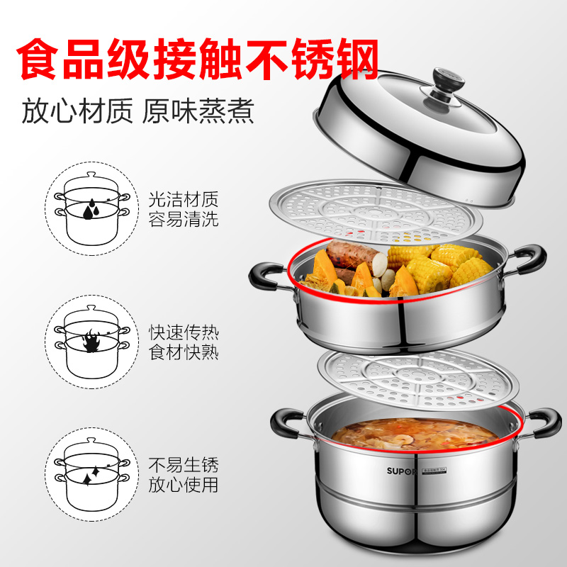 Suber steamer 304 stainless steel three layers thickened household large capacity steamer 28cm induction cooker gas stove