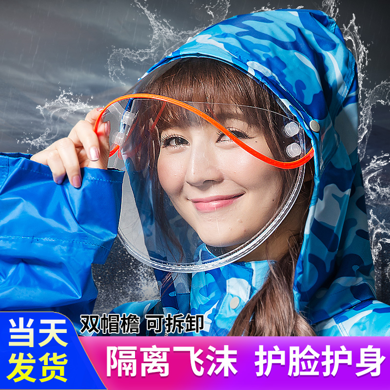 Camouflavored long style raincoat for men and women zipped fashion thickened full body battery electric motorcycle anti-rain cover face mask-Taobao