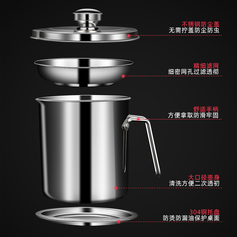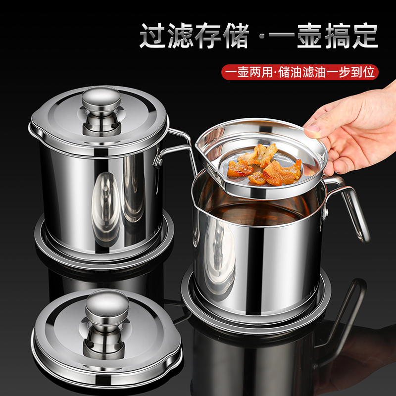 Filter Oil Divine Instrumental Kitchen Oil tank Stainless Steel Fried Drain Oil Filter Oil Slag Pot With Lid Sepp Oil Stockpot Oil Spill