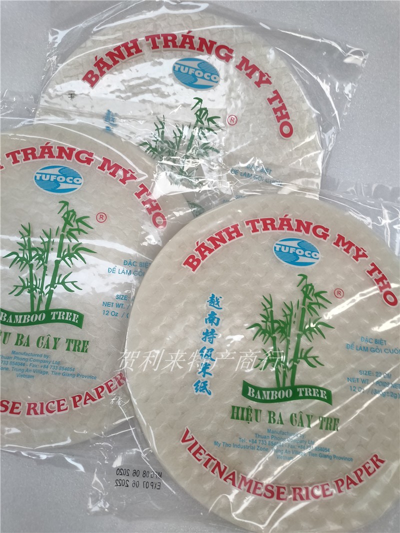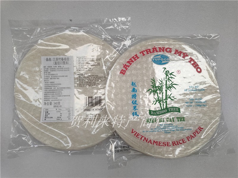 Vietnam imports the three original bamboo spring rolls leather transparent crystal leather-style thin rice paper pie leather 340gx diameter 22cm