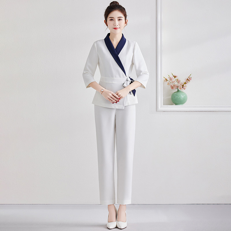 Blue collar white sleeve tops white pants white trousers yellow collar black sleeve tops black pants black pants white almond short sleeve tops white pants white blue short sleeve tops pants