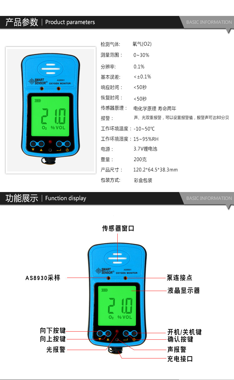 Himma AS8901 oxygen O2 concentration content tester tester handheld portable