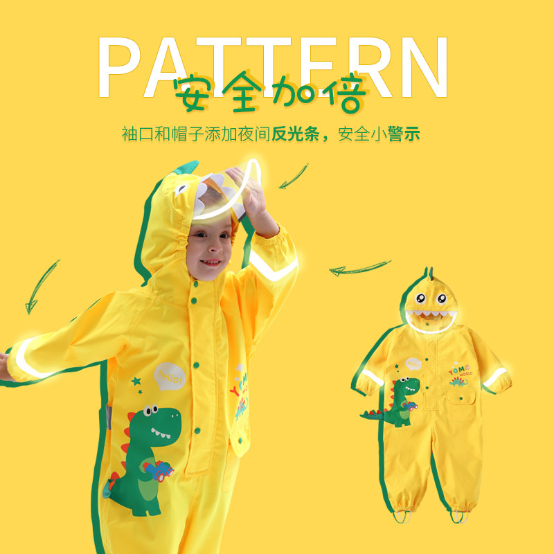 Kids raincoat kids one-piece set boy dinosaur waterproof full body baby poncho primary school girl kindergarten