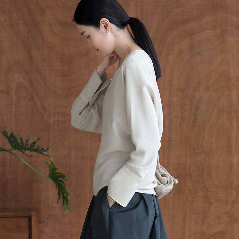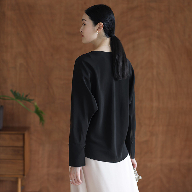 Terayama Fumiya Drink Simple and Beautiful ~ 30 mm Heavy Silk Heavy Crepe Minimalist Elegant Temperament Shirt Autumn