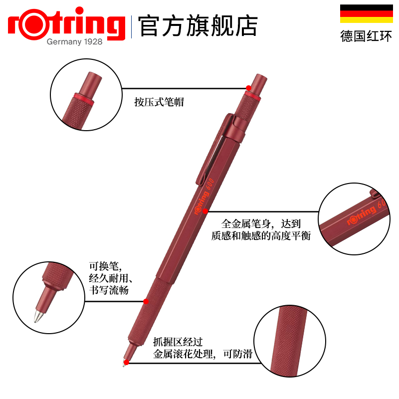 rotring red ring 600 high-grade low center of gravity ballpoint pen gift box full metal rod heavy hand feel customized lettering business office press type atomic signature pen to give gifts